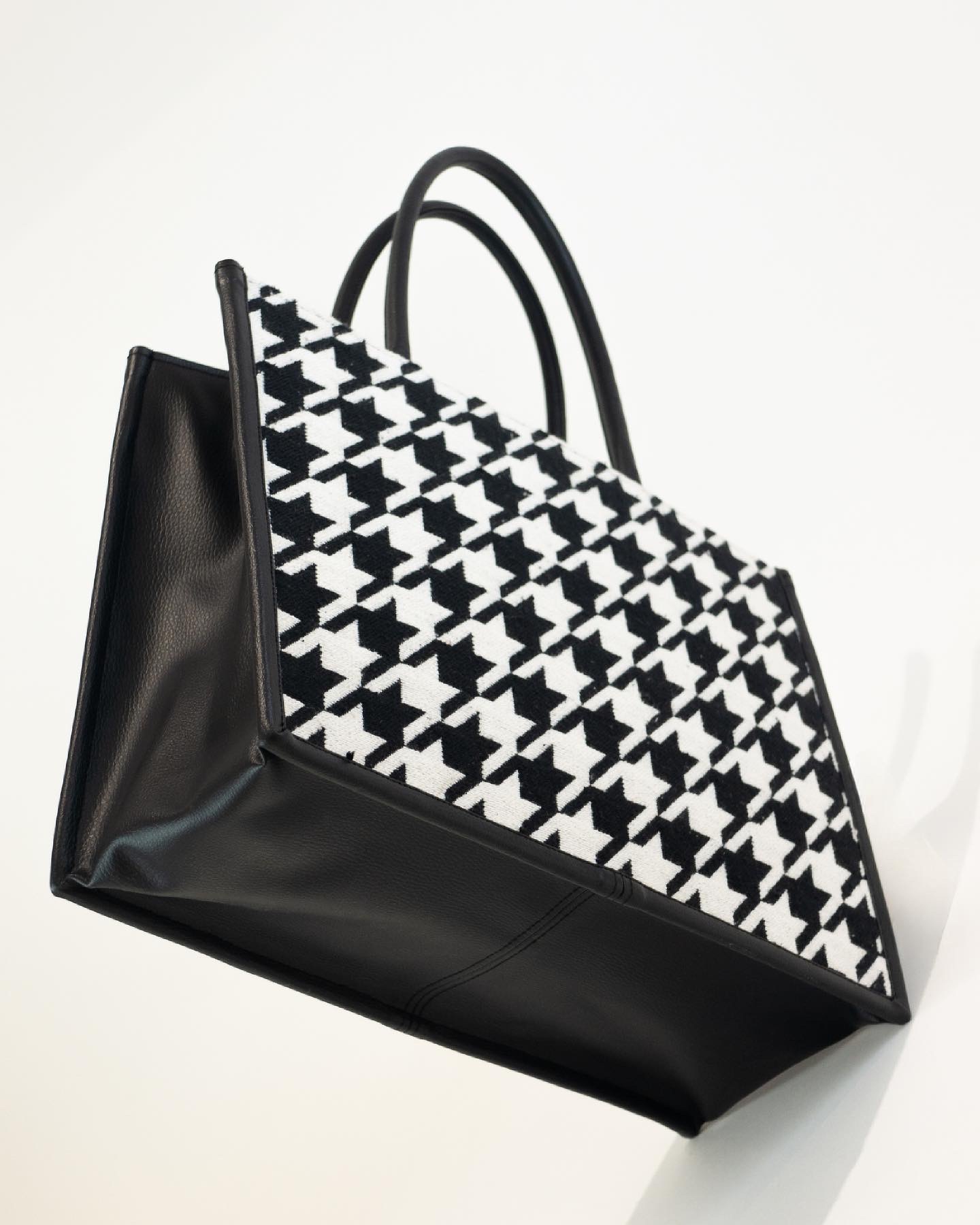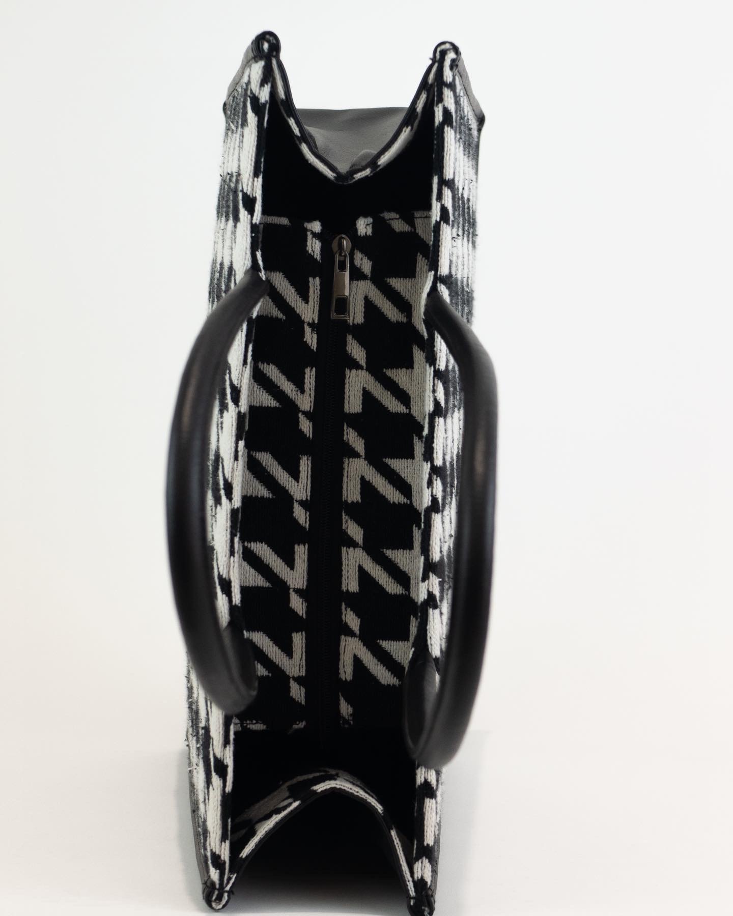Handbag in a jacquard-weave cotton blend fabric. Lining in polyester. Inner Zip Pocket. Main Zip Closure