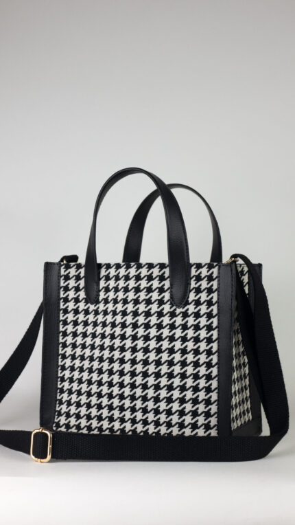 Handbag in a jacquard-weave cotton blend fabric. Lining in polyester. Inner Zip Pocket. Main Zip Closure
