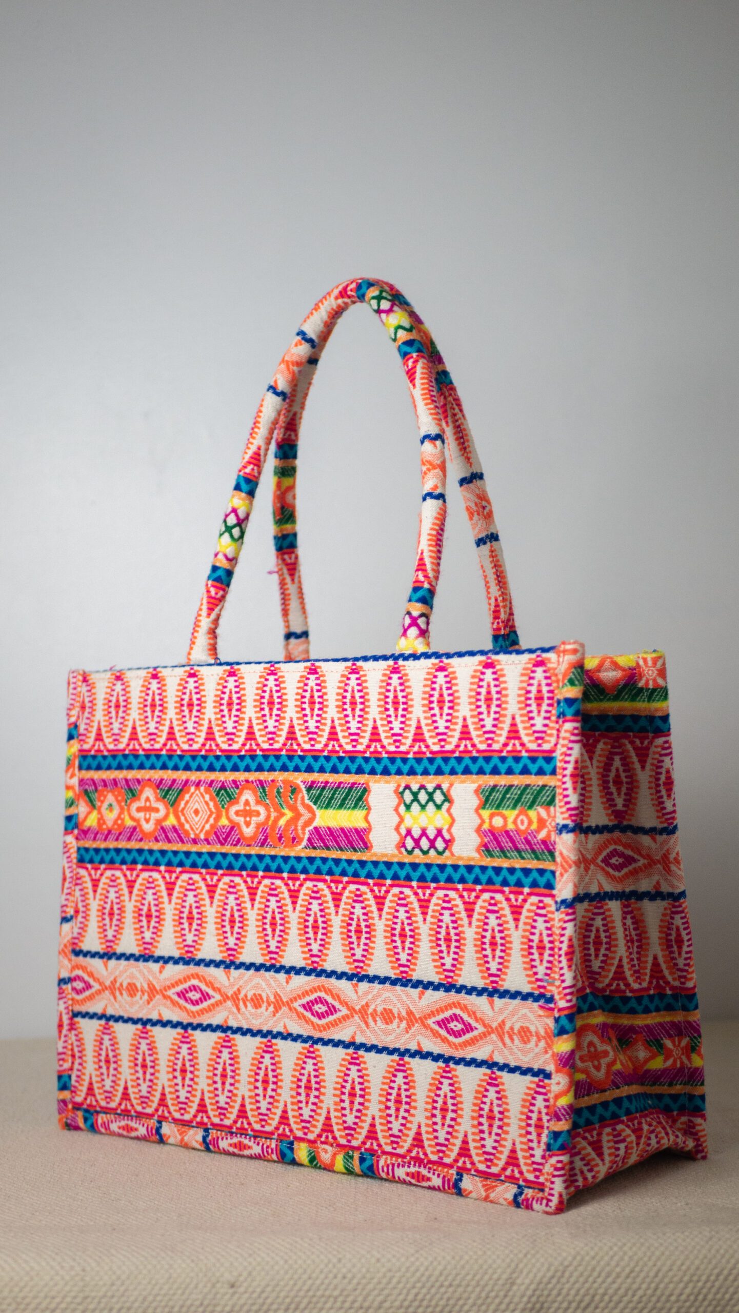 Handbag in a jacquard-weave cotton blend fabric. Lining in polyester. One Zip Pocket inside & Main Zip Closure